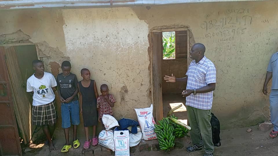 Retired Major Tumuhairwe and his group delivered relief items, including maize flour, matooke, clothes, and money, to help the orphans. Major Tumuhairwe said he was moved to act after hearing the story on Boona FM, initially sending food supplies before deciding to visit the family in person. He emphasized the urgent need for assistance as the government processes their father’s pension.