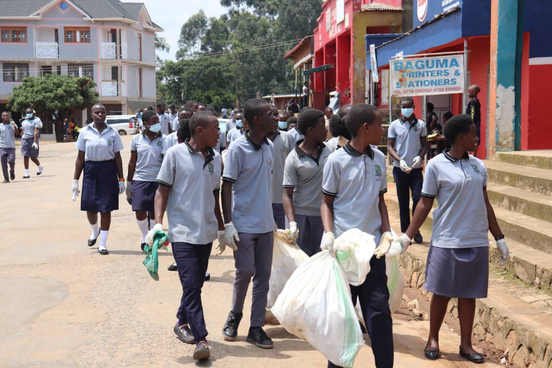 The participants began the cleaning from the school gate, proceeding along Rukungiri-Nyakibale Road, passing through the roundabout, Republic Road, Karegyesa Road, Go Down Street, and then back to the school. They cleared garbage pits, collected polythene bags and plastic containers, swept the streets, and loaded the waste onto a truck provided by the Rukungiri Municipal Council.