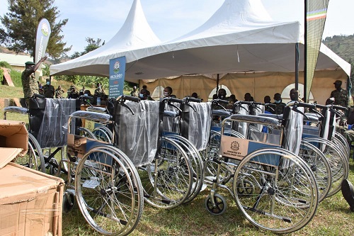 Maj Brian Okuta, the Manager of Wazakendo SACCO Mbarara branch, emphasized that the wheelchair donation aligns with the cooperative’s seventh principle of corporate social responsibility. The recipient, Lanse Corp. Agaba Baker, is a plumber serving in the Second Engineering Regiment at Makenke.